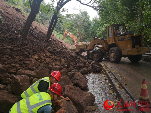 7月22日上午,雨后初晴的天氣涼風(fēng)習(xí)習(xí)。在國(guó)道318線萬(wàn)州境內(nèi)長(zhǎng)嶺與長(zhǎng)灘兩個(gè)鎮(zhèn)鄉(xiāng)之間的一處塌方體前,吳興建正在操作著熟悉的裝載機(jī),加緊搶通道路。正實(shí)行半幅通行的公路上,車(chē)流如織。項(xiàng)目副經(jīng)理孟紅偉正帶領(lǐng)搶險(xiǎn)突擊隊(duì),在另一側(cè)山體上加緊清理前幾天被山洪沖垮、引發(fā)塌方的堆積物,并組織機(jī)械人員疏通排水溝,砌筑片石混凝土擋墻。