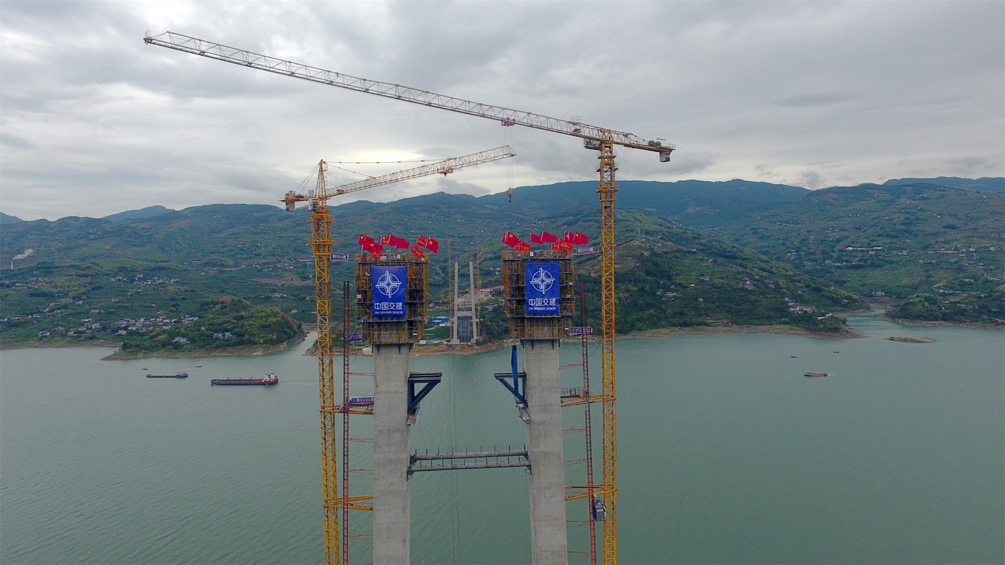 重慶萬州新田長江大橋北岸主塔成功封頂